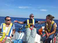 Sourire de l'équilibre parfois fluctuant des relations à bord, ajouter un Sicilien chaleureux à la liste des chouettes rencontres Glénans, tout comme notre "Mono-Manon" (décidément, la valeur n'attend pas le nombre des années).